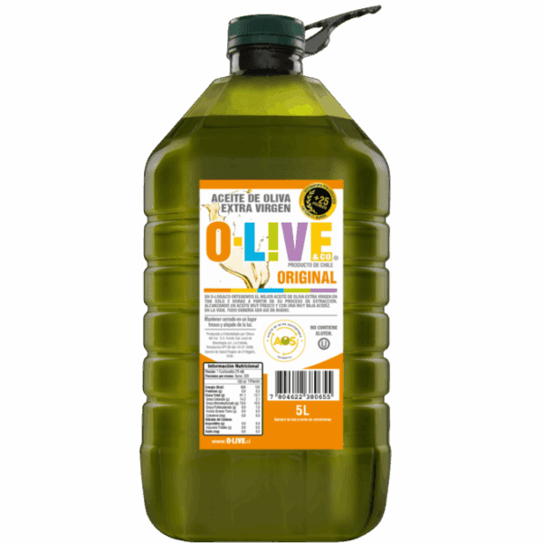 Formato 5 litros para que nunca te falte en tus recetas favoritas. Perfecto para cocina diaria, ensaladas y platos creativos. Con baja acidez y lleno de antioxidantes, O-Live es tu aliado para una vida más saludable y divertida.